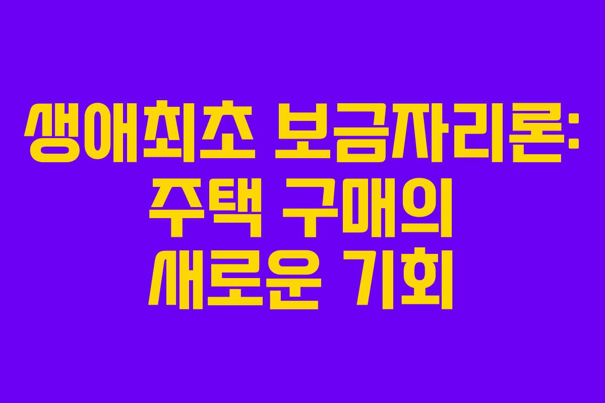 생애최초 보금자리론: 주택 구매의 새로운 기회