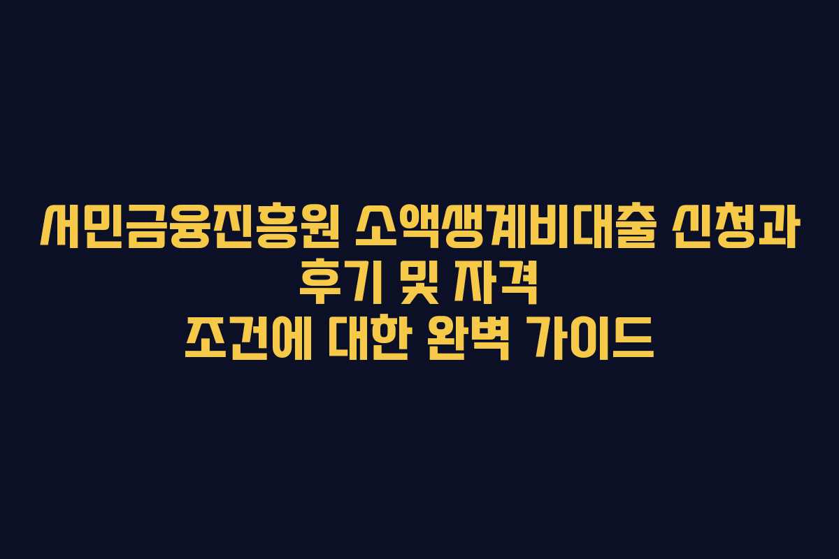 서민금융진흥원 소액생계비대출 신청과 후기 및 자격 조건에 대한 완벽 가이드