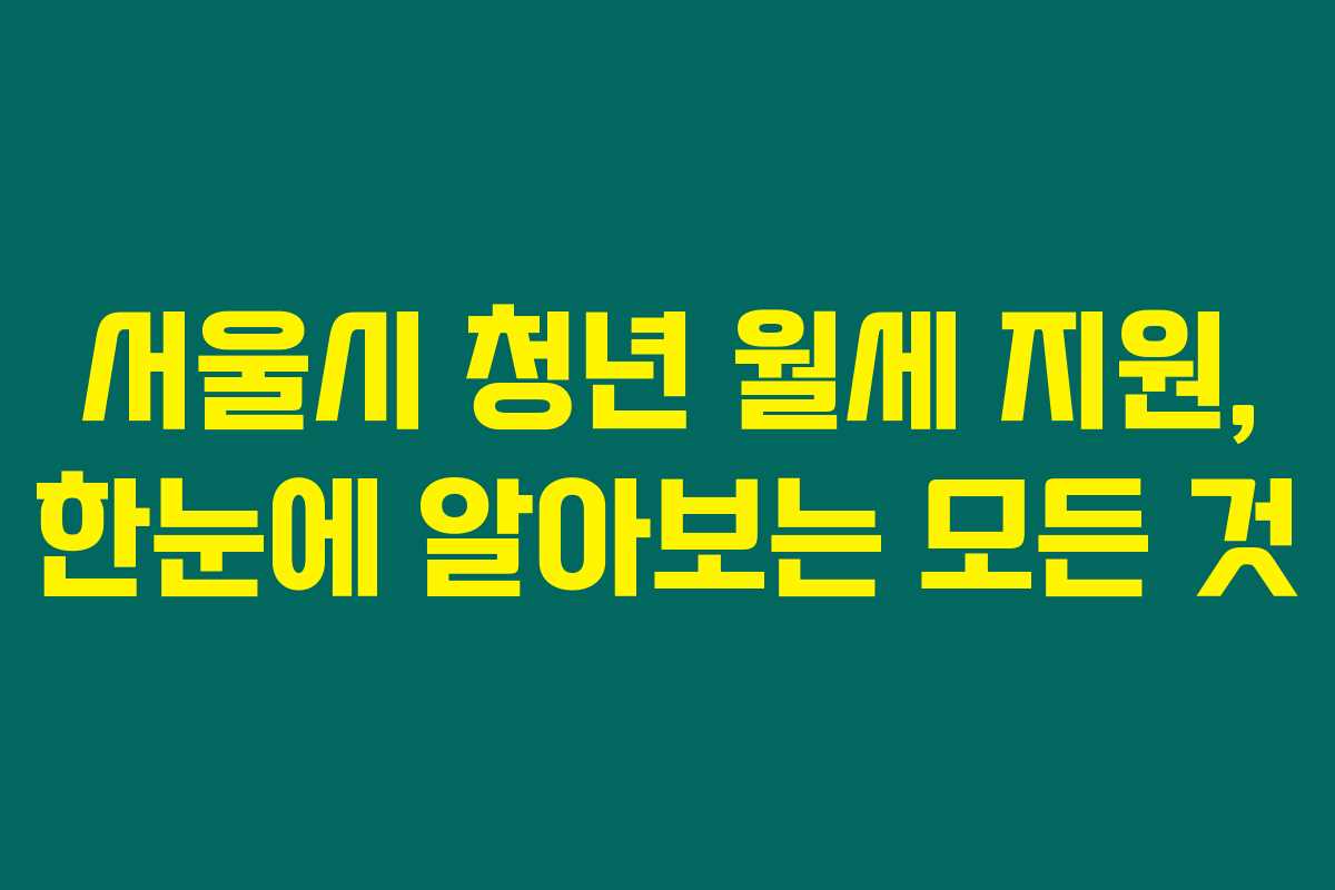 1. 서울시 청년 월세 지원은 누구를 위한 건가요?