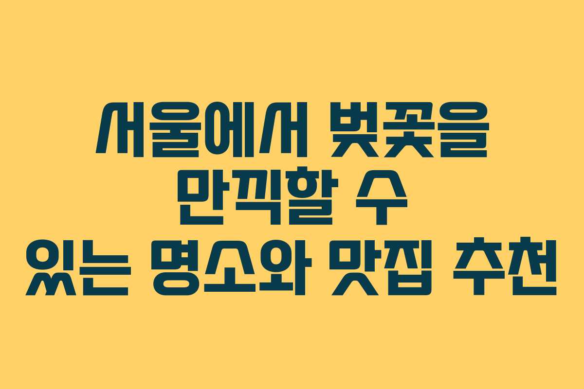 서울의 벚꽃 명소를 방문하며 맛집도 함께 즐겨보세요. 벚꽃을 만끽하며 소중한 추억을 만들어보시기 바랍니다. 가장 가고 싶은 벚꽃 명소와 맛집은 어디인지 댓글로 남겨주세요.