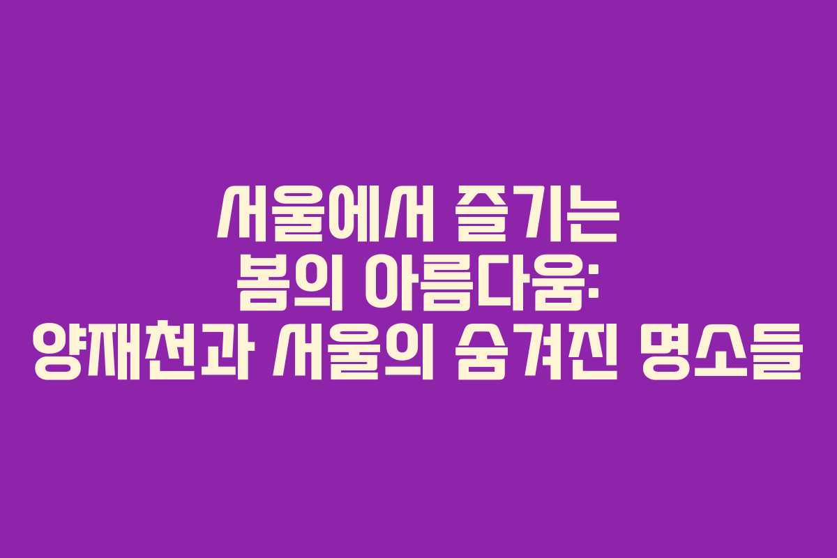 서울의 봄은 벚꽃이 만개하는 시기입니다. 특히 양재천 주변은 많은 이들에게 사랑받는 명소로, 아름다운 풍경과 다양한 즐길 거리를 제공합니다. 이 글에서는 양재천과 양재시민의숲을 포함해 서울의 다양한 장소에서 벚꽃을 즐기는 방법과 함께 그 외의 숨겨진 명소들을 소개하고자 합니다.