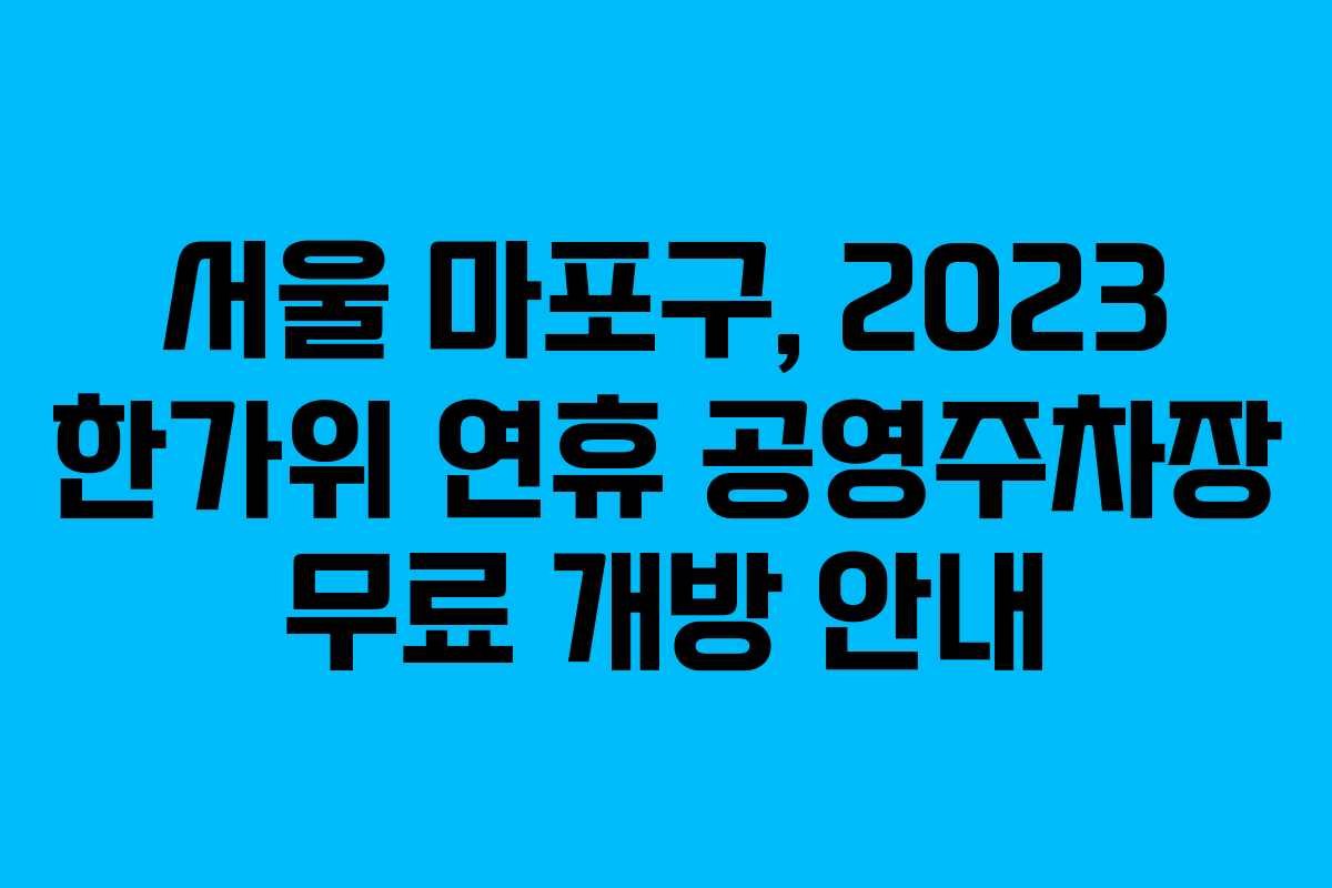 2023년 추석 연휴를 맞아 서울 마포구에서는 구민과 방문객을 위한 주차 편의를 제공하고자 관내 공영주차장 26개소를 무료로 개방합니다. 이번 무료 개방은 2023년 9월 28일부터 10월 3일까지 진행되며, 많은 이들이 이 혜택을 통해 보다 편리하게 주차할 수 있을 것으로 기대됩니다.