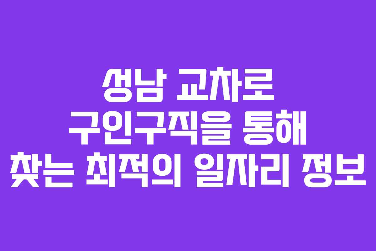 성남 교차로 구인구직의 활용 방법