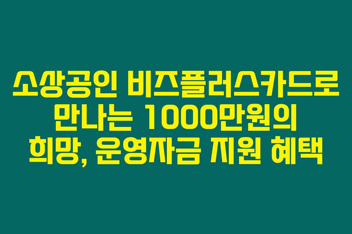 제가 직접 알아본 바로는, 소상공인 비즈플러스카드는 중·저신용 소상공인들에게 큰 힘이 되는 지원 프로그램이에요. 이 카드를 통해 최대 1,000만원을 신용카드로 발급받아 다양한 단기 운영자금에 활용할 수 있어서, 최근 자금 흐름이 좋지 않은 소상공인에게는 특별한 희망이 될 수 있겠지요. 아래를 읽어보시면, 자세한 지원 조건과 신청 방법 등을 쉽게 이해하실 수 있을 거예요.