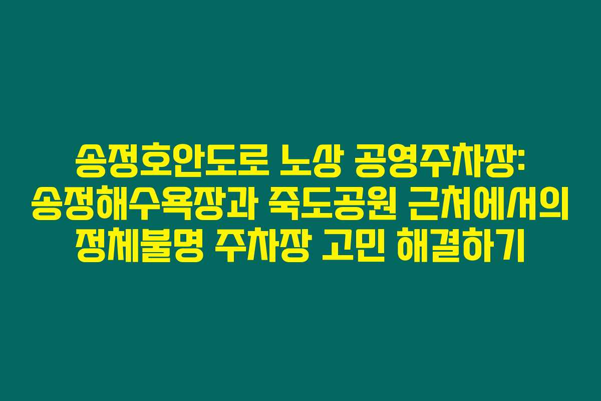 제가 직접 경험해본 결과로는, 송정해수욕장과 죽도공원 근처에 위치한 송정호안도로 노상 공영주차장은 좋은 위치에 있어 많은 관광객들이 이용하기에 적합한 장소입니다. 다음 내용에서는 이 주차장의 위치, 주차요금, 그리고 이용 방법에 대해 자세히 설명드릴게요. 아래를 읽어보시면 여러분의 주차 고민이 확실히 해결될 거예요.