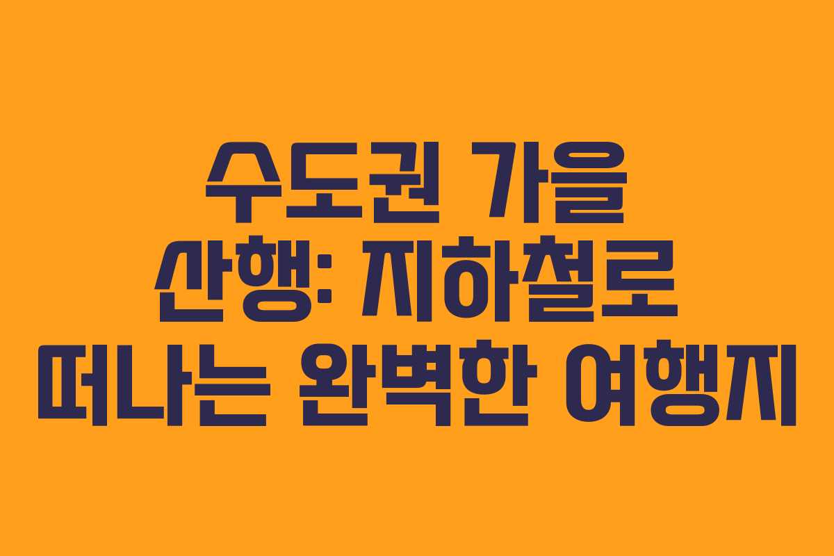 가을의 선선한 바람과 단풍이 물들어가는 시기에 서울 및 인근 지역의 산에서 자연의 아름다움을 만끽할 수 있는 기회를 놓칠 수 없다. 이 글에서는 지하철을 이용해 쉽게 접근할 수 있는 수도권의 다양한 산행 장소를 소개한다. 각 산은 그 자체로 매력을 지닌 곳으로, 주말에 가벼운 산행을 계획하고 있는 이들에게 안성맞춤이다.