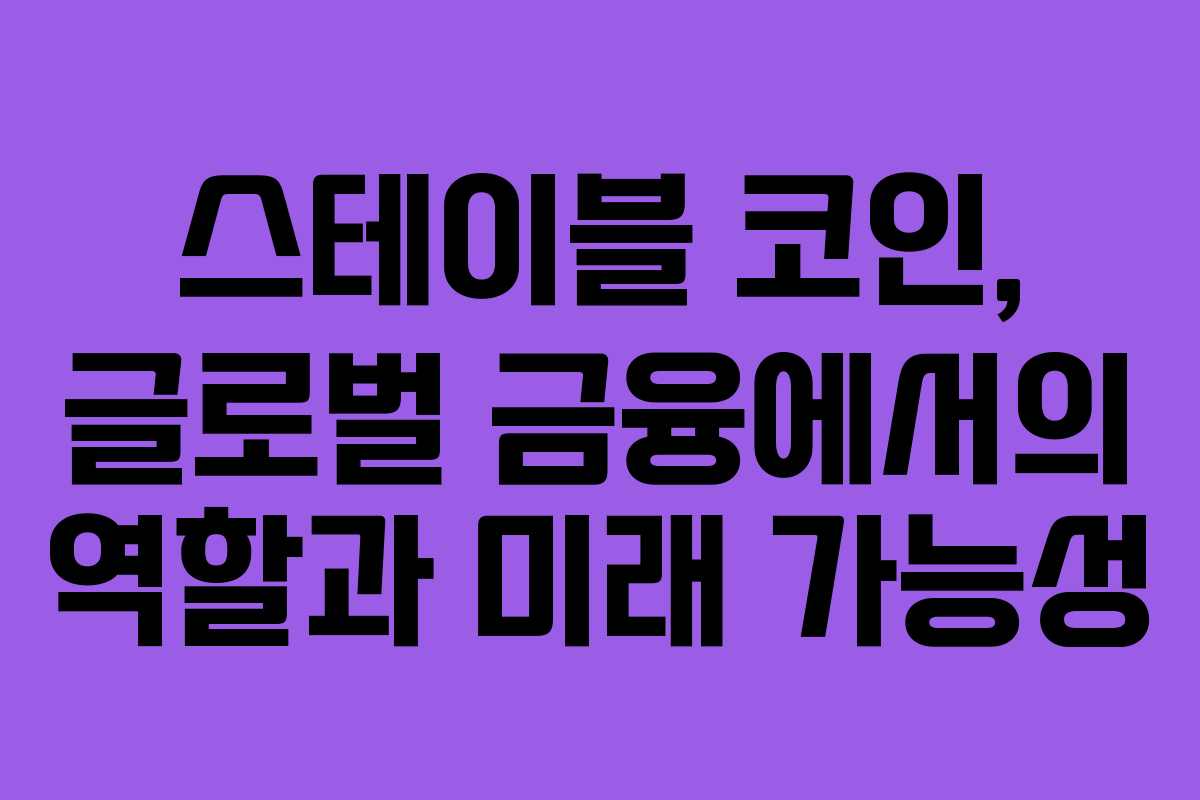 스테이블 코인의 사용이 증가하면서 글로벌 금융 시장에서의 역할이 중요해질 것으로 보이며, 특히 불안정한 통화를 가진 국가에서 수요가 높아질 것입니다. -