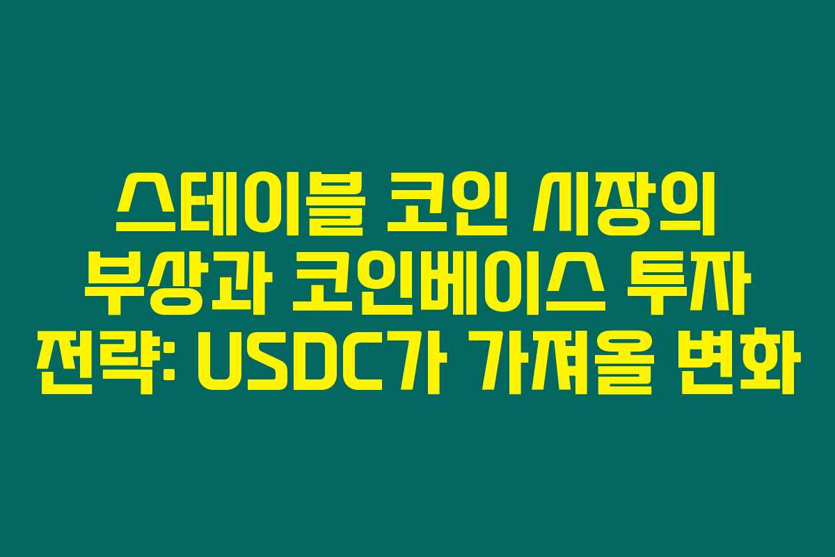 스테이블 코인 시장의 성장과 코인베이스의 투자 기회는 서로 긴밀하게 연결되어 있습니다. USDC의 지속적인 성장과 그로 인한 코인베이스의 수익 확대는 앞으로도 많은 관심을 받을 것입니다. 투자에 관한 추가적인 질문이 있으시다면 언제든지 댓글로 알려주세요!