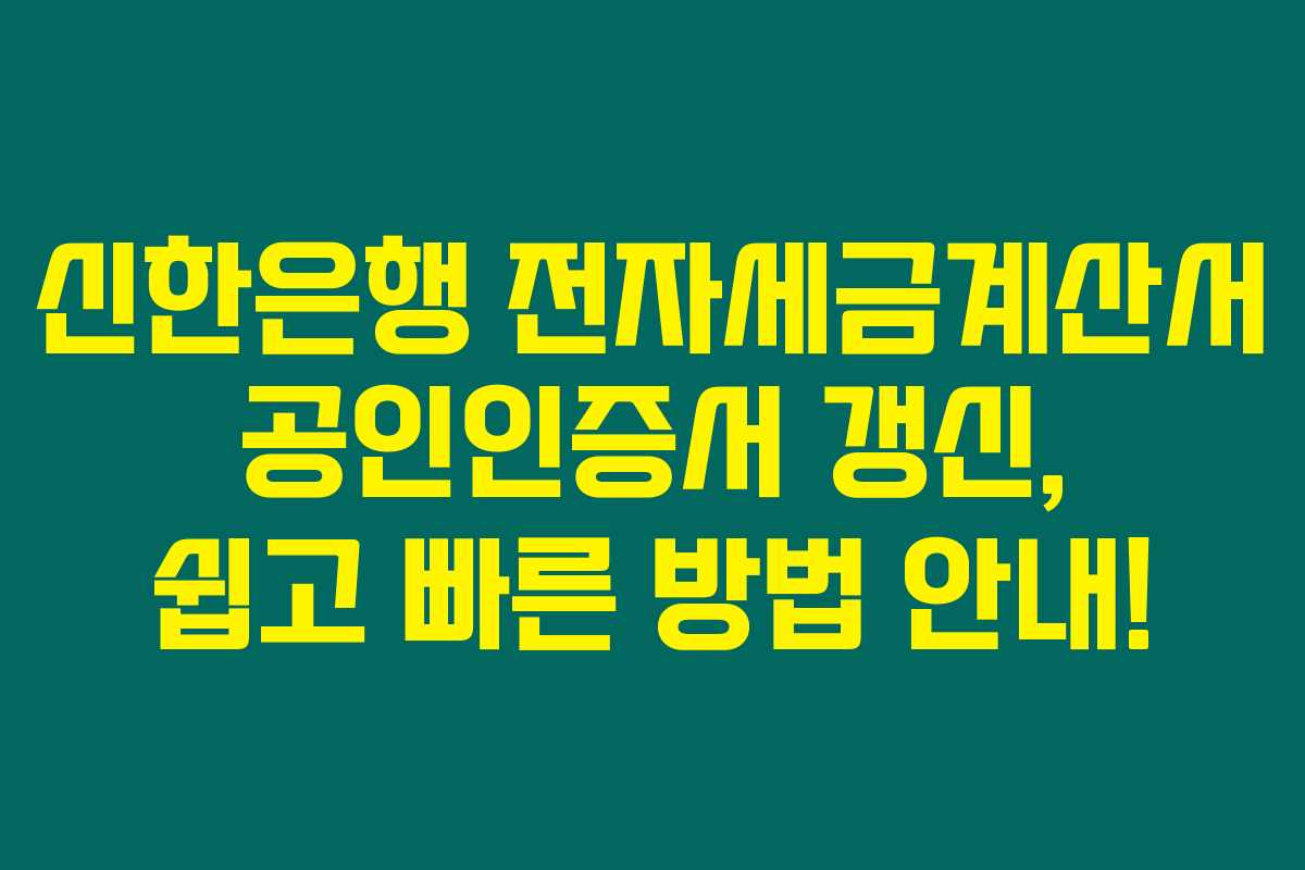 신한은행의 전자세금계산서용 공인인증서 갱신은 절차가 상당히 간단해요. 필요한 준비를 잘 해두고 빠르고 안전하게 갱신하셔서 전자세금계산서를 문제없이 발행하세요!