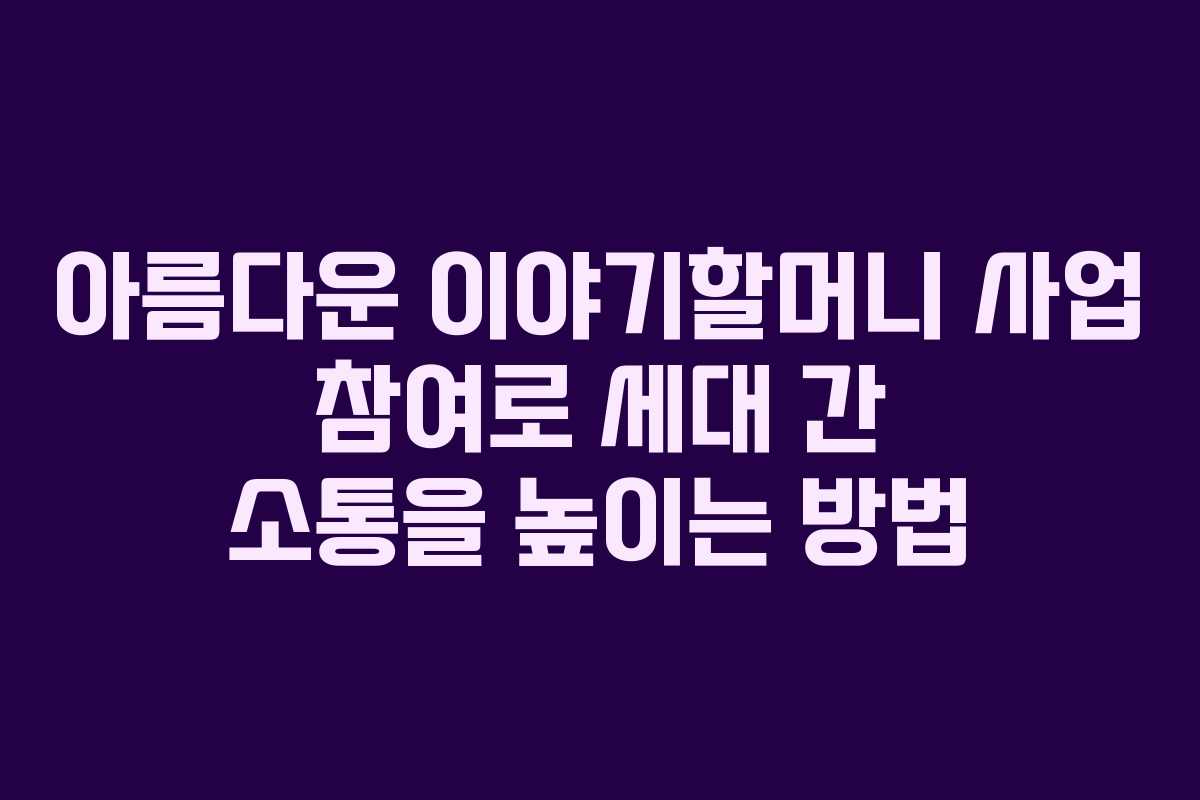 아름다운 이야기할머니 사업은 세대 간의 소통을 촉진하고, 아이들에게 소중한 경험을 제공하는 기회를 가진다. 현재 참여를 원하는 할머니들은 모집 공고를 확인하고, 지원 절차를 진행할 수 있다. 이 프로그램은 지역 사회에 긍정적인 영향을 미칠 수 있는 소중한 기회이다.