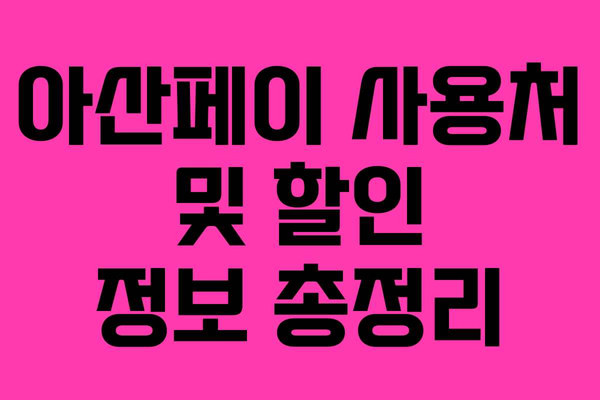 아래 표는 아산페이의 주요 사용처와 할인 정보를 요약한 것입니다.