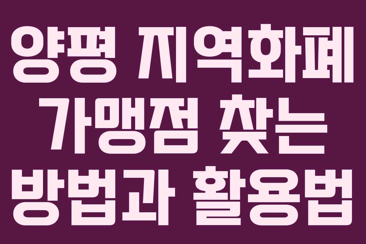 양평 지역화폐는 지정된 가맹점에서만 사용 가능하다. 따라서 가맹점 목록을 미리 확인하는 것이 중요하다.
