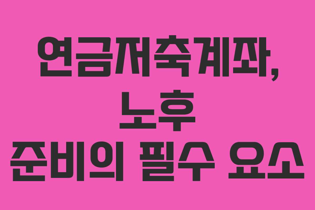 - 2026년 현재 연금저축계좌의 중요성과 활용 방안