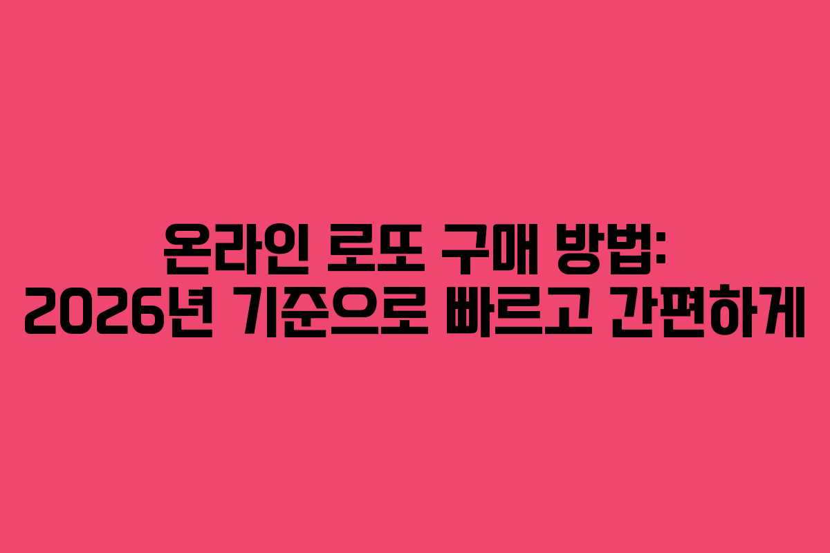 온라인 로또 구매는 이제 많은 사람들이 선호하는 방법으로 자리잡았습니다. 특히 바쁜 일상 속에서 3분 만에 모바일로 로또를 구매할 수 있는 방법은 그 매력을 더욱 높이고 있습니다. 이 글에서는 2026년 기준으로 온라인 로또 구매를 위한 단계별 절차를 간결하게 정리하였습니다.