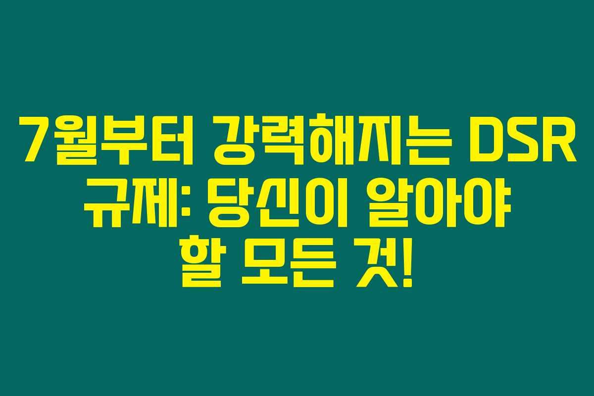 7월 1일부터 DSR 규제가 시행됩니다. 이 날짜를 반드시 기억하세요!