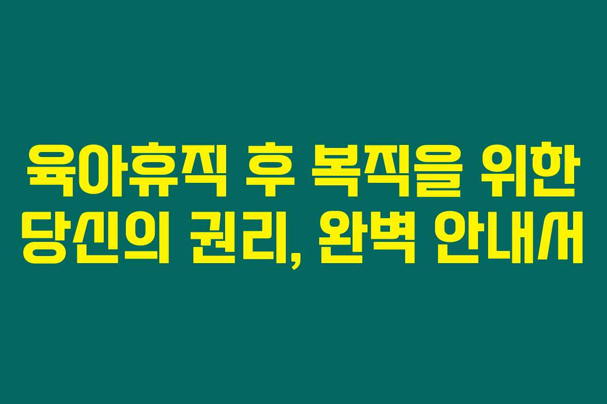 최근 많은 기업에서 육아휴직 후의 복직을 온전히 보장받지 못하는 경우가 많습니다. 이 글을 통해 여러분이 알고 계셔야 할 권리와 대처 방법을 강조하고 싶습니다.