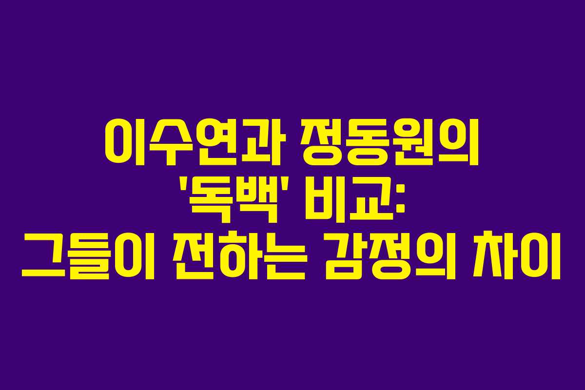 이수연과 정동원의 ‘독백’은 서로 다른 매력을 지니고 있습니다. 정동원의 버전은 절제된 슬픔과 서정미로 가득 차 있으며, 이수연의 해석은 강렬한 호소력과 드라마틱한 감정으로 가득합니다. 두 아티스트 모두 각자의 방식으로 ‘독백’을 해석하며, 그들의 무대는 각기 다른 감동을 선사합니다.