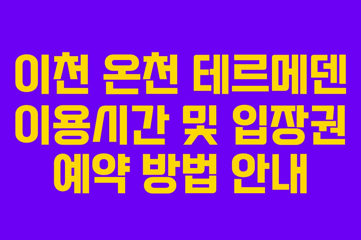 이천 온천 테르메덴을 방문하려면 예약이 필요합니다. 예약 방법은 주로 두 가지로 나뉩니다. 첫째, 이천 테르메덴 공식 홈페이지를 통해 예약할 수 있으며, 둘째, 다양한 온라인 플랫폼에서도 예약이 가능합니다. 여러 사이트에서 제공하는 가격과 조건을 비교하여 가장 유리한 조건으로 예약하는 것이 좋습니다. 사전 예약을 통해 할인 혜택을 받을 수 있는 경우도 많으니, 꼭 활용해 보세요.