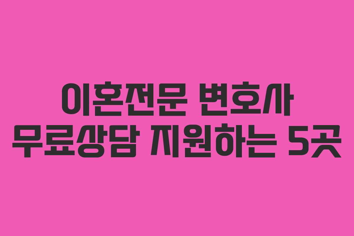 다음은 이혼전문 변호사 무료상담을 제공하는 5곳입니다. 각 기관의 상담 방식과 예약 방법을 안내드리니, 필요하신 경우 활용해 보시기 바랍니다.