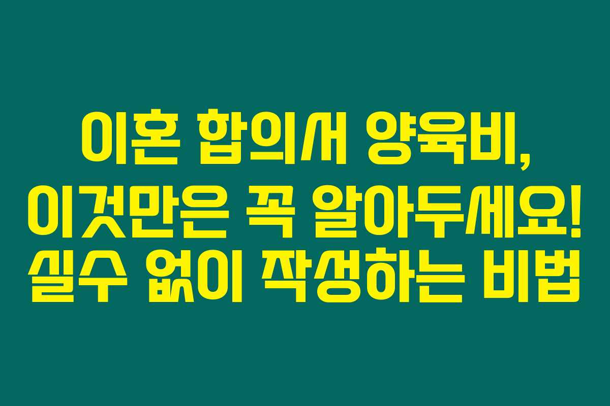 이처럼 양육비와 관련한 필수 정보를 잘 정리해두면, 안정적인 자녀 양육 환경을 마련할 수 있습니다. 지금까지 말씀드린 내용을 참고하셔서, 이혼 합의서를 작성할 때 실수를 줄이고 안정적인 양육비 지급을 받으시기 바랍니다.