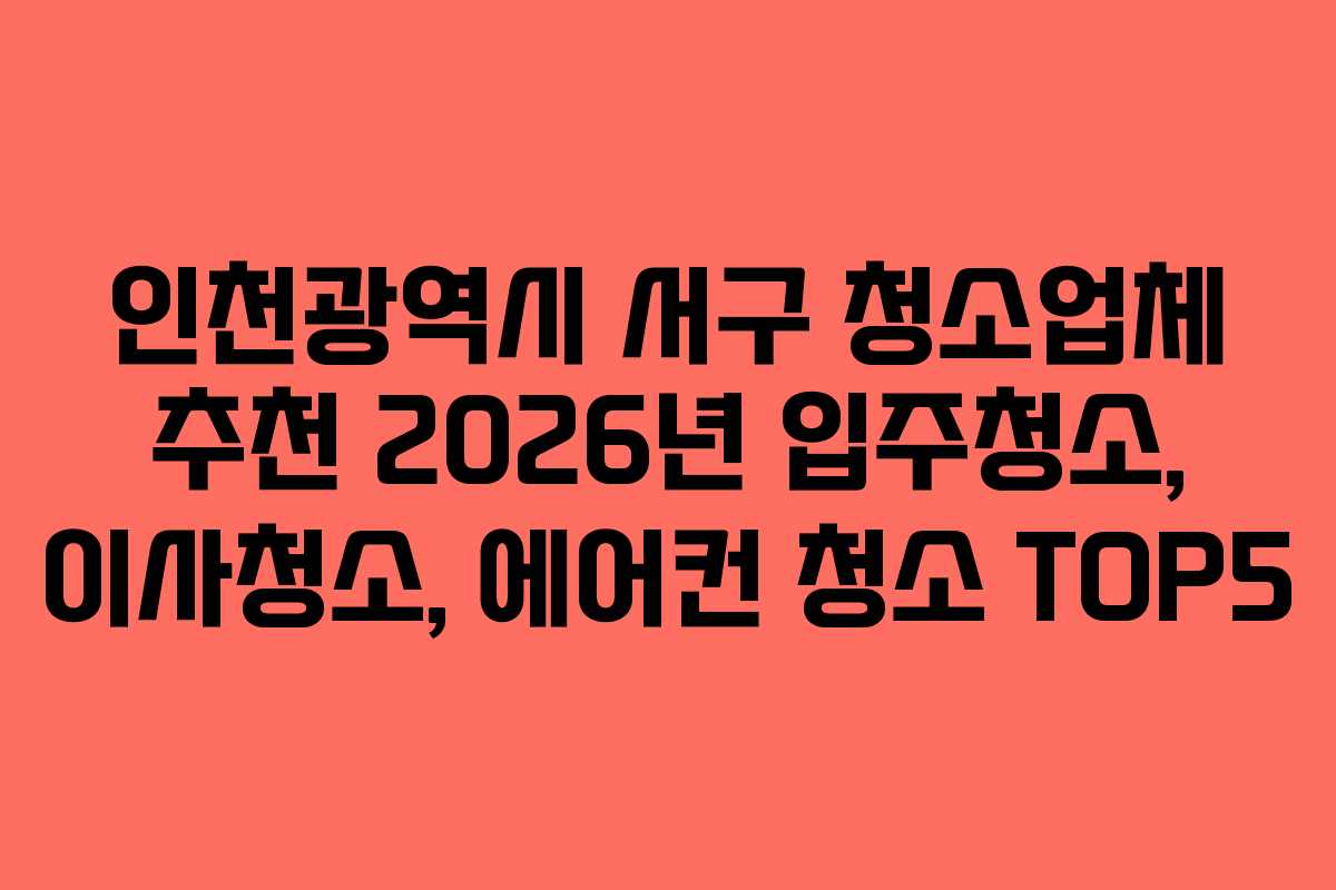 인천광역시 서구에서 청소업체를 찾고 계신가요? 다양한 청소 서비스를 제공하는 업체들이 많습니다. 이번 글에서는 2026년 기준으로 입주청소, 이사청소, 에어컨 청소를 전문적으로 다루는 추천 TOP5 청소업체를 소개합니다. 이 정보를 통해 여러분의 선택에 도움이 되길 바랍니다.