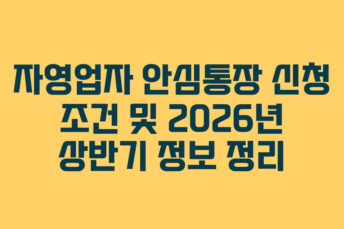 자영업자 안심통장 개요 및 2026년 변경 사항