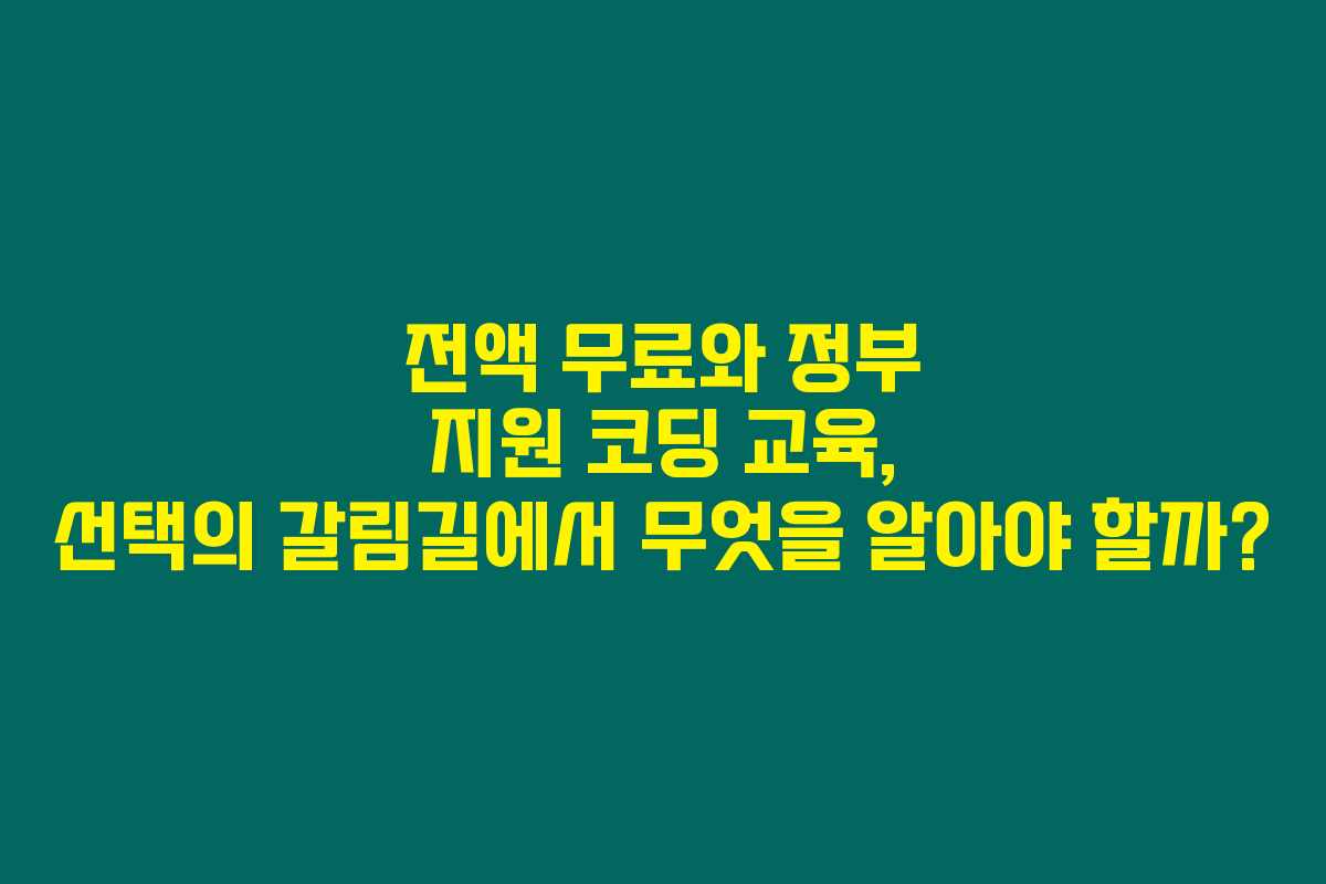 교육의 선택은 정말 중요하죠. 국비지원 교육과 일반 무료 코딩 교육의 차이를 이해하고, 적절한 선택을 통해 한 걸음 더 나아가시기 바라요.