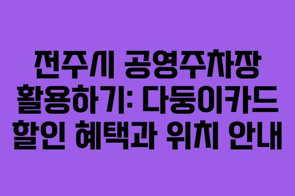 전주시의 공영주차장에 대한 정보는 다양한 경로를 통해 접할 수 있습니다. 다둥이카드를 통해 할인 혜택을 적극 활용하고, 주차 스트레스를 줄이기 위해 공영주차장을 선택하는 것이 바람직합니다. 전주시 내에서 효율적으로 주차를 관리할 수 있는 방법을 모색하십시오.