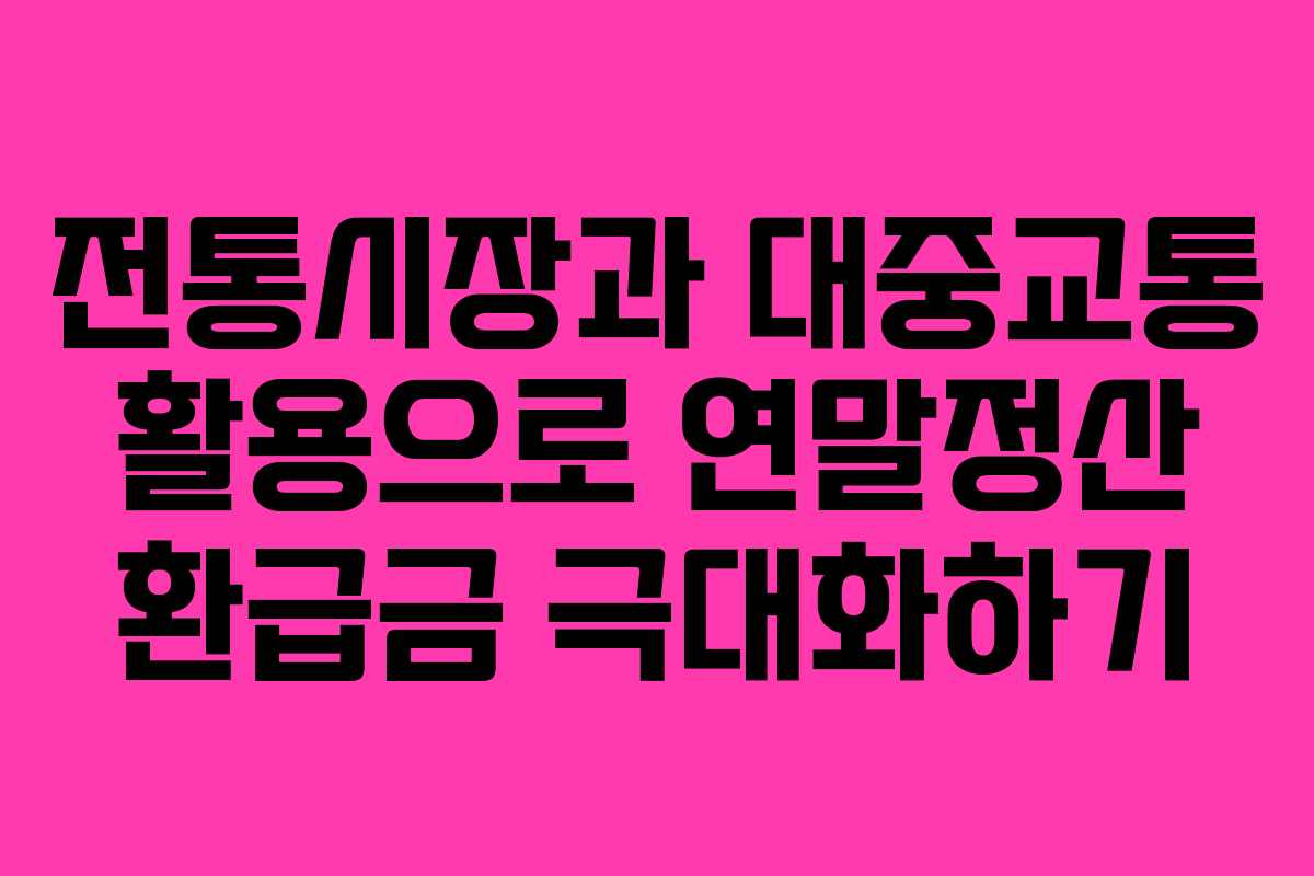 연말정산에서 환급금을 극대화할 수 있는 전략을 알아보면서, 전통시장과 대중교통의 사용을 강조할 필요가 있다. 이 두 가지 항목은 추가 공제 혜택을 제공하여 소비자에게 유리한 조건을 만들어준다. 이를 통해 환급금을 효과적으로 늘릴 수 있는 방법을 살펴보겠다.