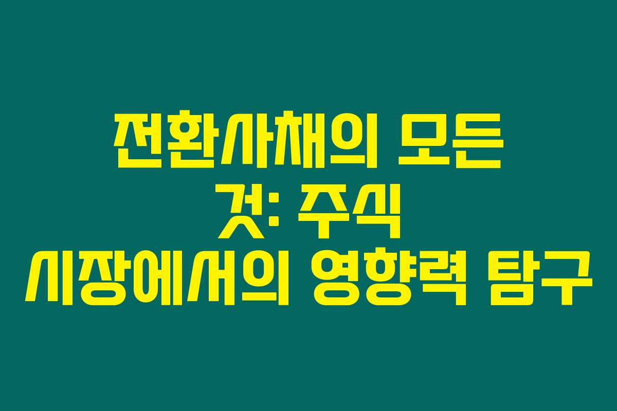 앞으로 주식 시장을 바라보며 투자 결정을 내릴 때, 전환사채에 대한 이해를 바탕으로 더 확고한 판단을 내리시길 바라요.