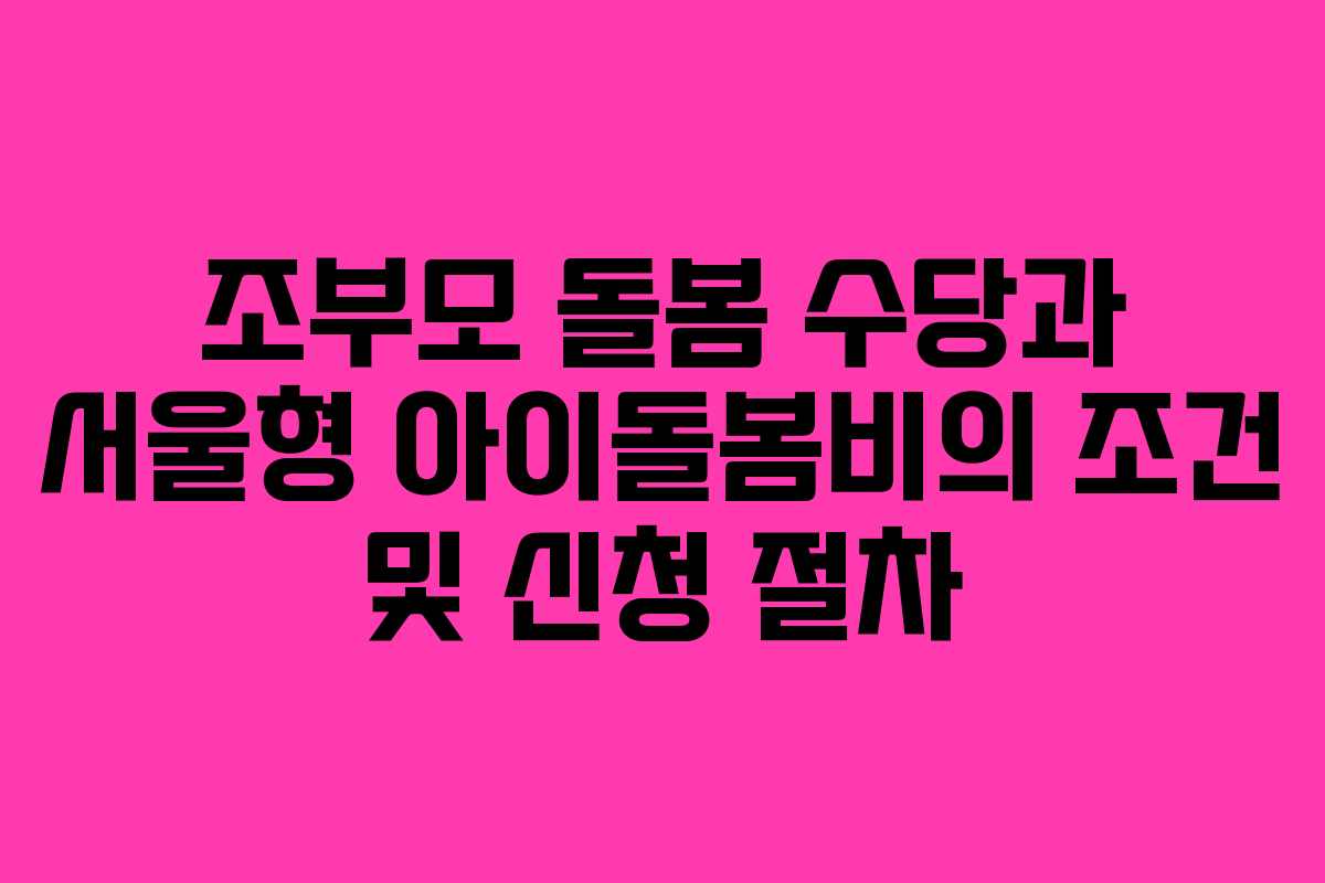 조부모 돌봄 수당과 서울형 아이돌봄비는 맞벌이 및 한부모 가정의 육아 부담을 덜어줄 수 있는 중요한 지원이다. 신청 절차를 잘 확인하여 필요한 지원을 받아보기를 권장한다.