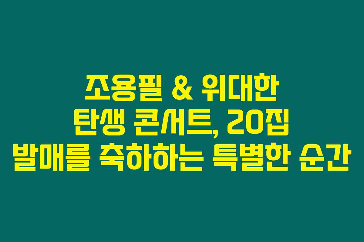 조용필의 최신 소식과 함께 콘서트 티켓 예매 방법도 알려드릴 테니, 아래를 읽어보시면 많은 도움이 되실 거예요. 특히 이번글에서는 공연 날짜와 장소, 예매 정보와 할인 혜택까지 모두 담아봤어요. 놓치지 마세요!