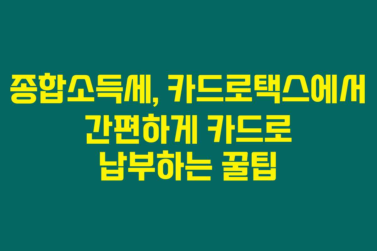 저는 직접 경험해 본 바로는, 카드로택스를 통해 종합소득세를 카드로 납부하는 방법이 생각보다 훨씬 쉽고 편리하더군요. 그래서 이번 글에서는 카드로택스를 이용한 종합소득세 카드납부 방법을 상세히 소개해 드리려고 해요. 카드납부를 고려하시는 분들에게 좋은 참고자료가 될 거예요.