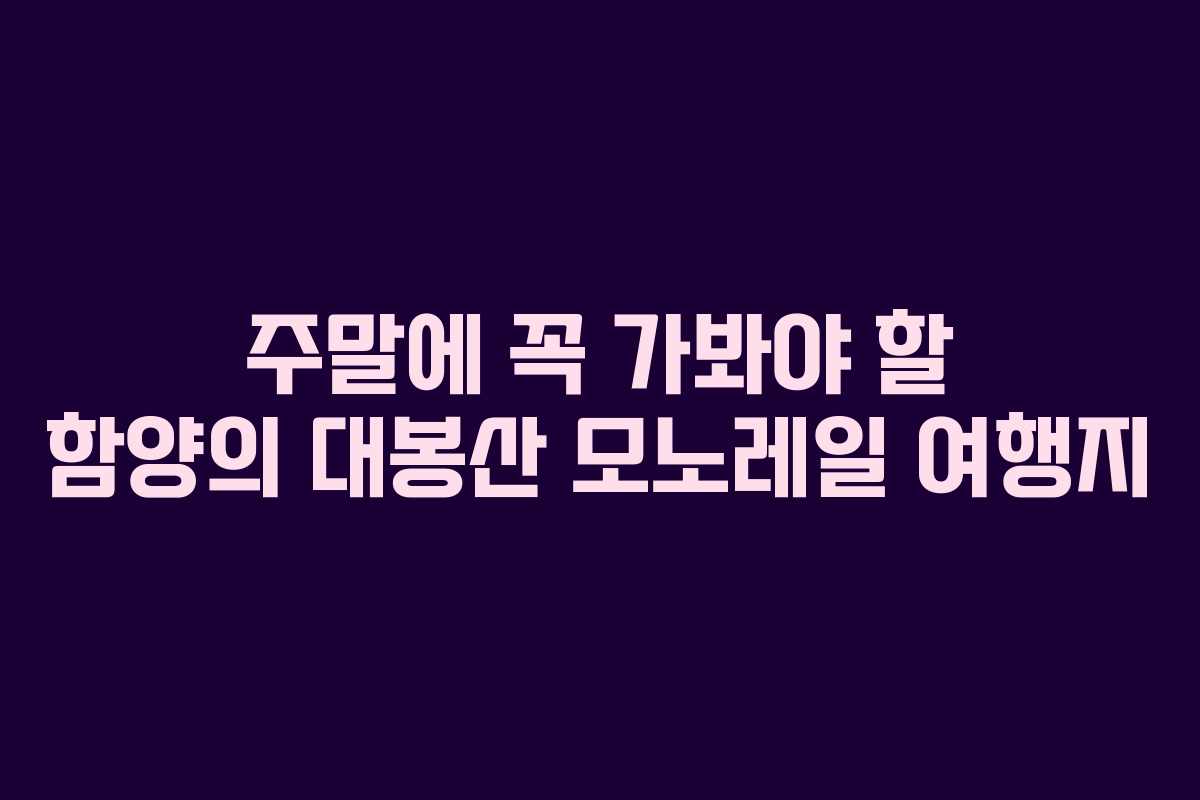 함양은 아름다운 자연 환경과 함께 가을철 여행지로서 매력적인 곳입니다. 특히 대봉산 모노레일은 2026년 기준으로 더욱 인기가 높아지고 있습니다. 대봉산은 해발 1,229미터의 높은 산으로, 정상인 천왕봉까지 편리하게 올라갈 수 있는 방법이 있습니다. 대봉 캠핑랜드와 함께 다양한 액티비티를 즐길 수 있는 이곳은 주말 여행지로 안성맞춤입니다.