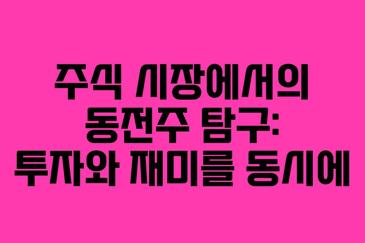 주식 투자는 많은 사람들에게 흥미로운 경험으로 여겨진다. 그 중에서도 동전주는 적은 금액으로도 시작할 수 있는 투자 방법으로, 최근에는 더욱 주목받고 있다. 본 포스팅에서는 현재 주식 시장에서 1,000원 미만의 동전주를 살펴보며, 이들이 어떤 특성을 지니고 있는지 알아보겠다.
