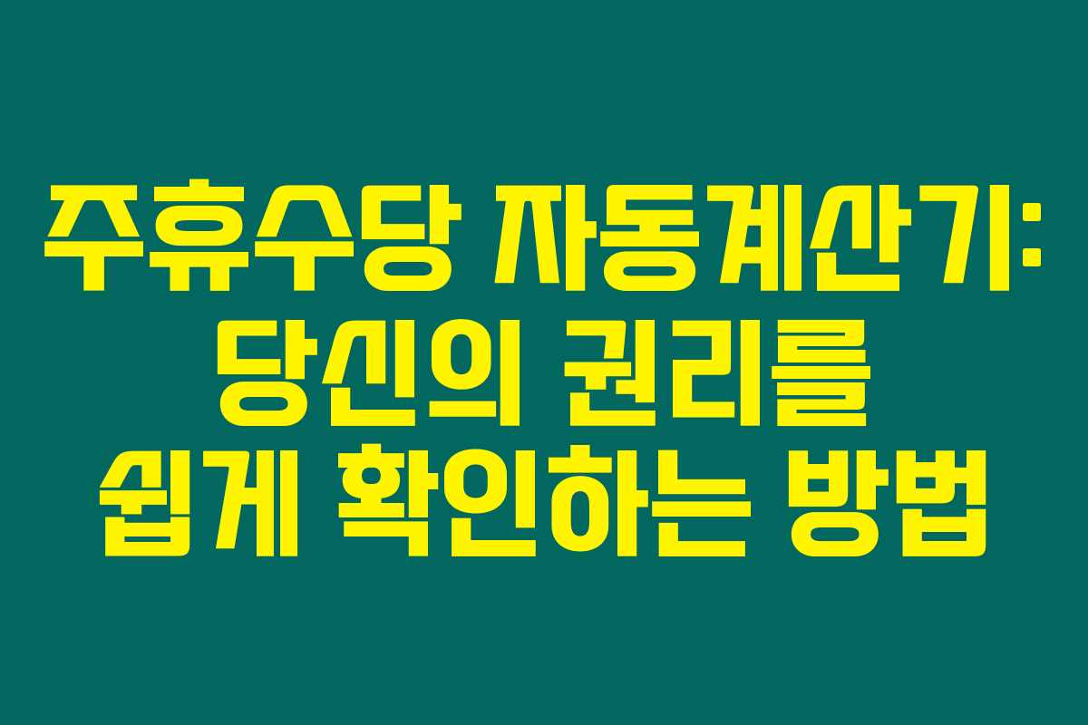 주휴수당을 제대로 이해하고 계산하지 않으면 소중한 근로자의 권리를 놓칠 수 있어요. 주휴수당에 대한 내용을 알고 싶다면, 아래를 읽어보시면 어떠세요? 주휴수당이 무엇인지 그리고 어떻게 자동으로 계산할 수 있는지 알아보고, 놓치고 싶지 않은 정보를 확인해보세요!