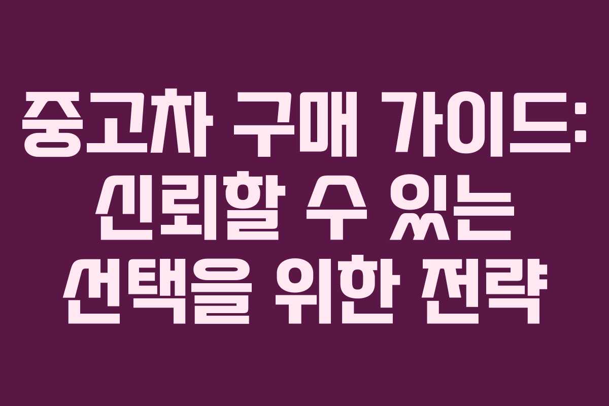중고차 구매 시 가장 중요한 것은 차량의 상태와 이력입니다. 무사고 차량을 선택하고, 보험 이력이 없는 차량을 찾는 것이 좋습니다.