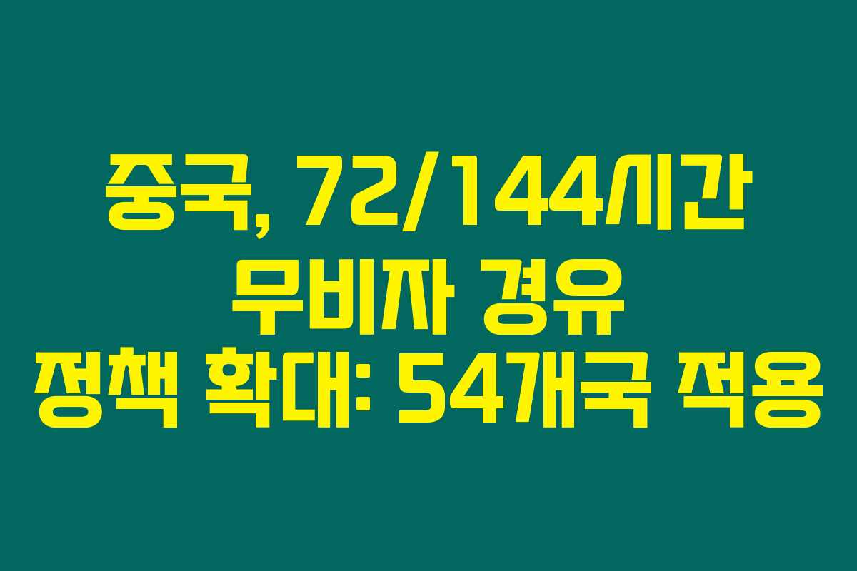 중국, 72/144시간 무비자 경유 정책 확대: 54개국 적용