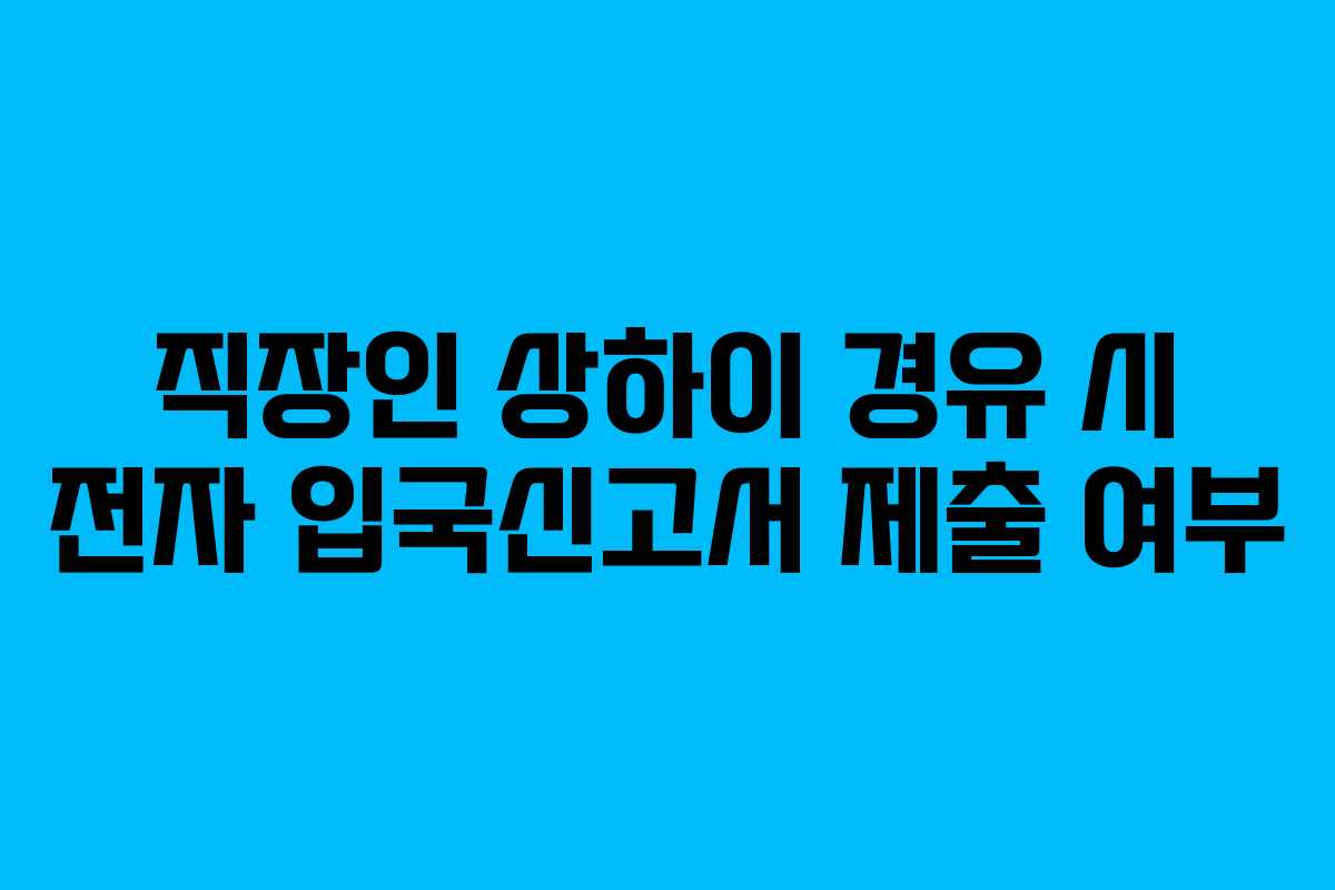 상하이를 경유하여 중국을 방문할 때, 전자 입국신고서 제출 여부에 대한 궁금증은 많은 직장인들이 공통적으로 느끼는 부분입니다. 제가 상하이를 여행하면서 겪었던 경험을 바탕으로, 전자 입국신고서에 대해 자세히 설명드리겠습니다. 이 글은 전자 입국신고서의 필요성과 제출 방법, 유의사항, 체크리스트 등을 포함하여 여러분이 상하이를 방문할 때 꼭 알아야 할 정보를 제공합니다.