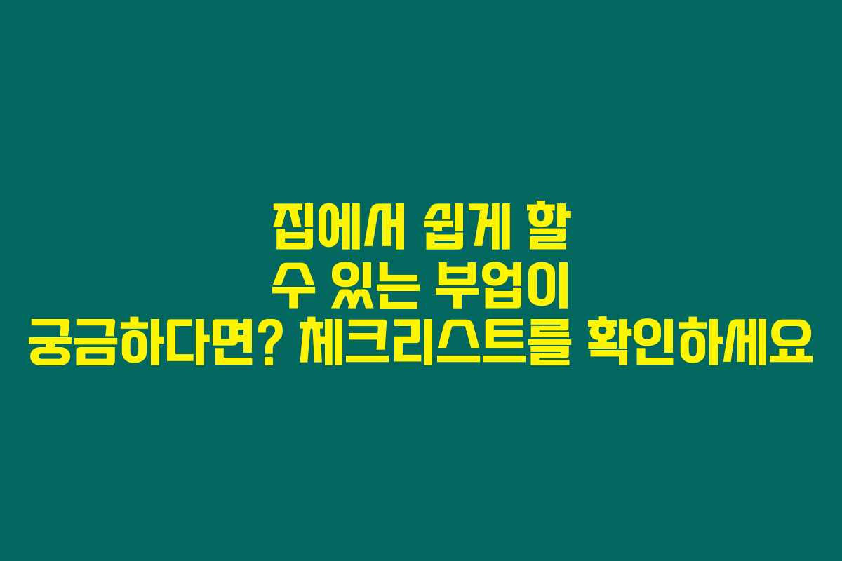 집에서 쉽게 할 수 있는 부업을 찾고 계신다면, 계속해서 정보를 찾아보시는 것도 좋습니다. 누구나 할 수 있는 간단한 부업부터 시작해 나만의 수익을 만들어 보아요!