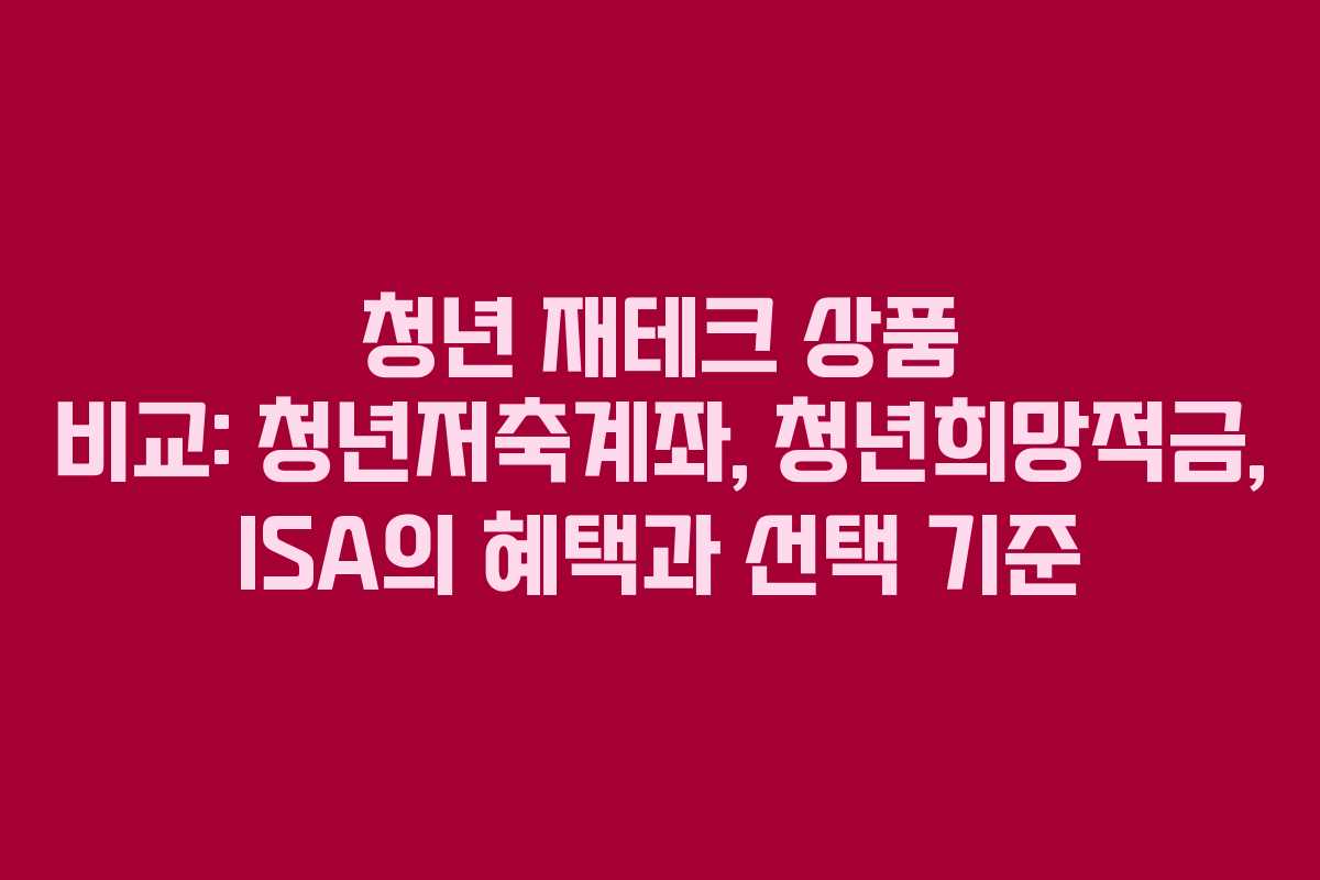 청년저축계좌, 청년희망적금, ISA는 각기 다른 장점과 조건을 지니고 있다. 자신의 소득 수준, 저축 목표, 투자 성향 등을 면밀히 분석하고, 각 상품의 장단점을 비교하여 가장 적합한 상품을 선택하는 것이 중요하다. 이를 통해 안정적이고 효율적인 자산 형성이 가능할 것이다.