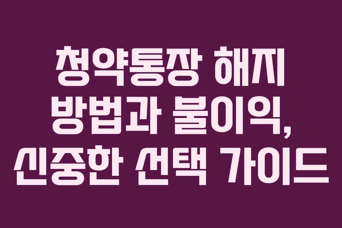 청약통장을 해지하기 전에는 여러 가지 불이익을 충분히 고려해야 한다. 청약통장은 단순한 저축 수단이 아니라, 미래의 주택 마련을 위한 중요한 기반이기 때문에 불이익을 간과하면 후회할 가능성이 높다.