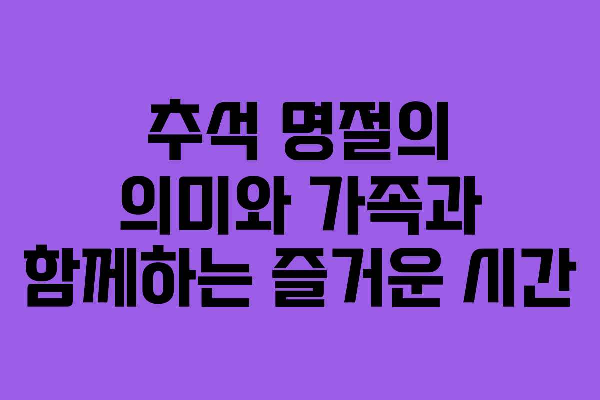 추석 명절은 한국에서 가장 큰 명절 중 하나로, 가족과 함께하는 시간을 의미합니다. 이 시기에 우리는 가족의 소중함을 느끼고, 함께 나누는 기쁨을 경험합니다.