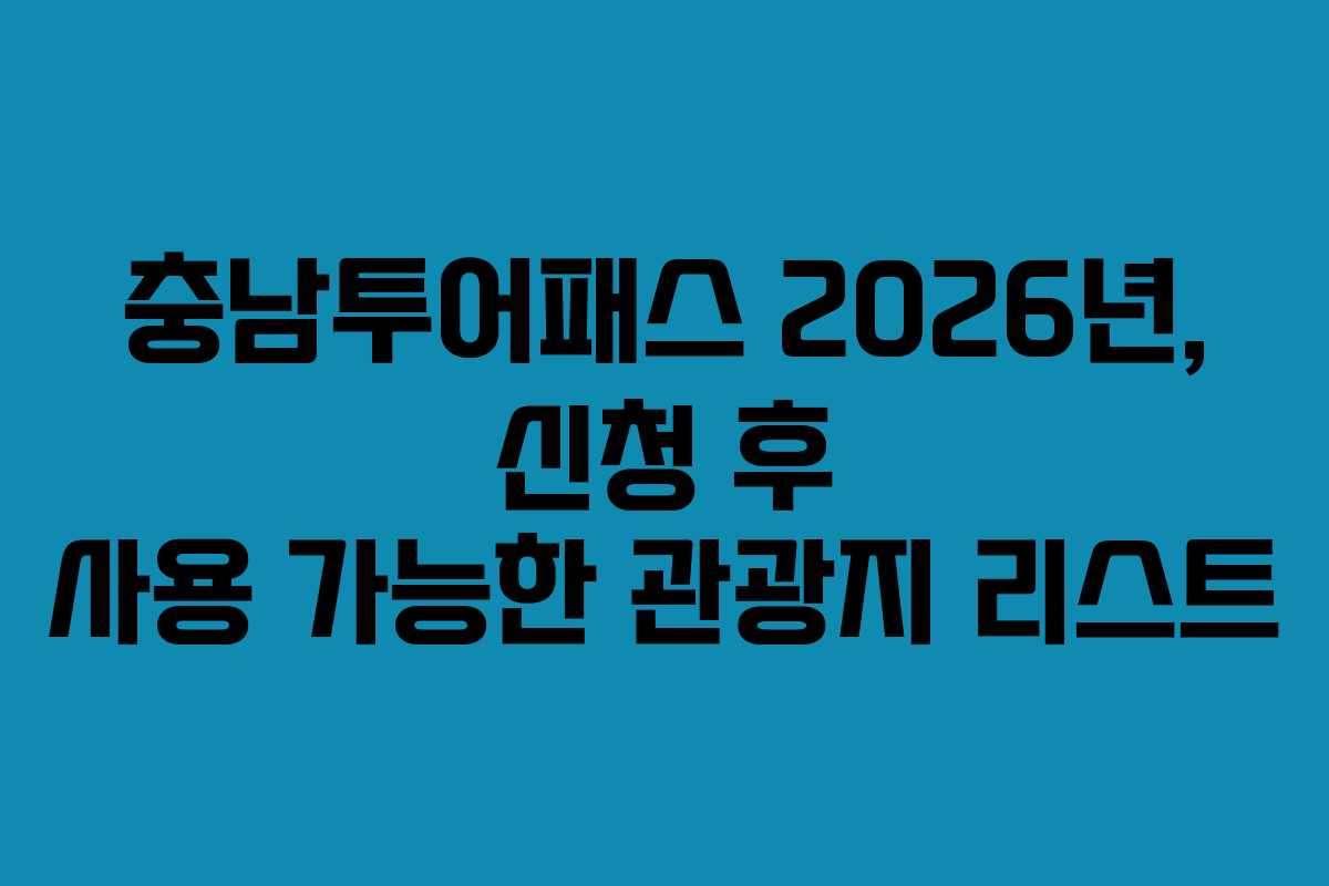 충남투어패스 2026년, 신청 후 사용 가능한 관광지 리스트