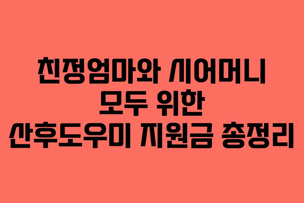산후도우미 지원금은 친정엄마뿐만 아니라 시어머니도 지원 받을 수 있는 경우가 있습니다. 하지만 각 지역의 정책에 따라 다를 수 있으므로, 사전에 확인이 필요합니다.