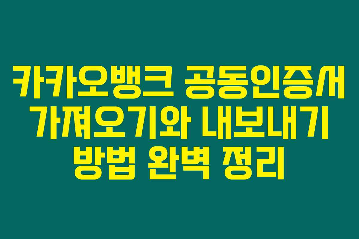 카카오뱅크에서 금융 거래를 활용하는 데 필수인 공동인증서! 이 글을 통해 여러분은 공동인증서를 어떻게 가져오고 내보내야 하는지에 대한 절차를 간단하게 이해하게 될 것입니다. 아래를 읽어보시면 안전하고 편리하게 금융 서비스를 이용하는 방법을 알게 될 거예요.