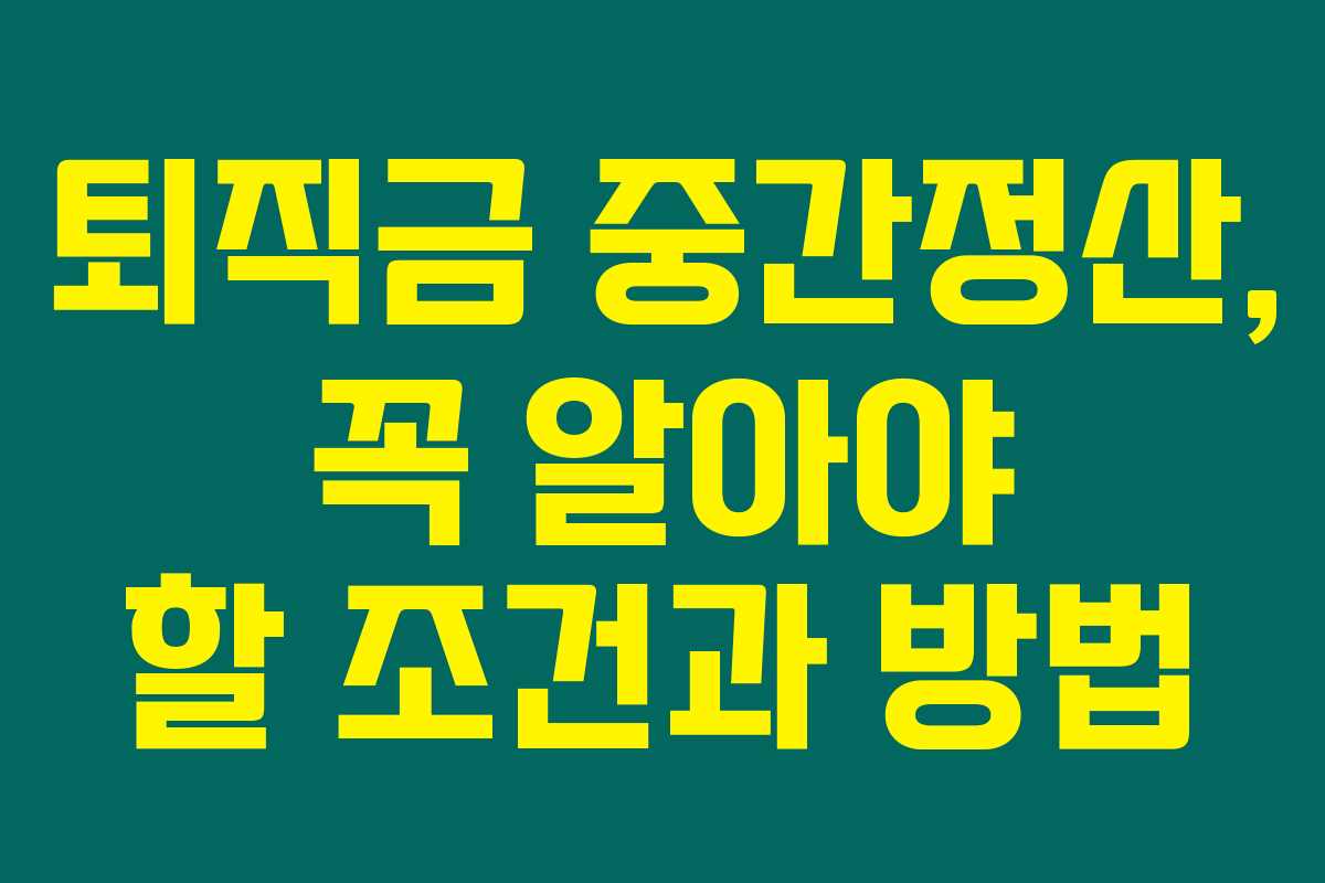 퇴직금 중간정산에 대해 알고 계신가요? 퇴직금이 필요할 때 중간정산을 통해 자금을 받을 수 있는 방법이 있다는 사실은 이미 많은 분들이 알고 계실 거예요. 급하게 목돈이 필요할 때 정말 유용한 옵션이죠. 하지만, 퇴직금 중간정산이 간단한 건 아니라는 사실도 함께 이해해 두셔야 합니다. 아래를 읽어보시면 퇴직금 중간정산의 조건과 받는 방법을 자세히 알아보실 수 있습니다.