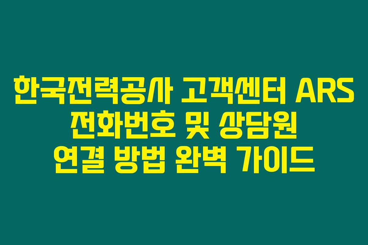 한국전력공사 고객센터 ARS 전화번호 및 상담원 연결 방법 완벽 가이드