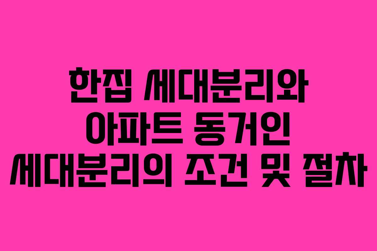 한집 세대분리는 다양한 상황에서 발생할 수 있으며, 이는 주택 소유와 거주 형태에 따라 달라질 수 있다. 아파트 동거인 세대분리는 특정 조건을 만족할 경우 가능하다. 이 글에서는 세대분리의 필요성과 절차를 구체적으로 살펴보겠다.