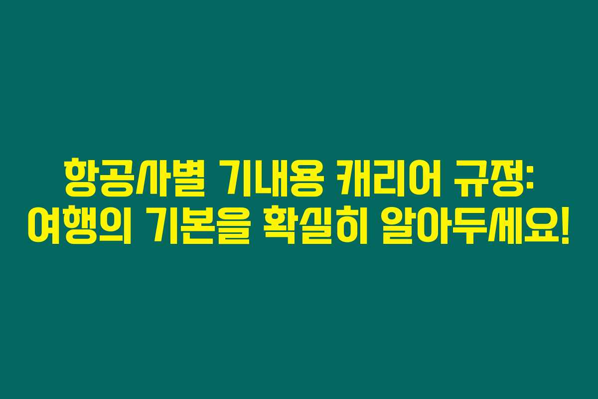 이번 글을 통해 기내용 캐리어 규정에 대한 유용한 정보들을 알아보았어요. 각 항공사별 규정을 잘 체크하고 여행에 차질이 없도록 준비하세요. 여행의 기본 정보는 항상 체크해주세요!